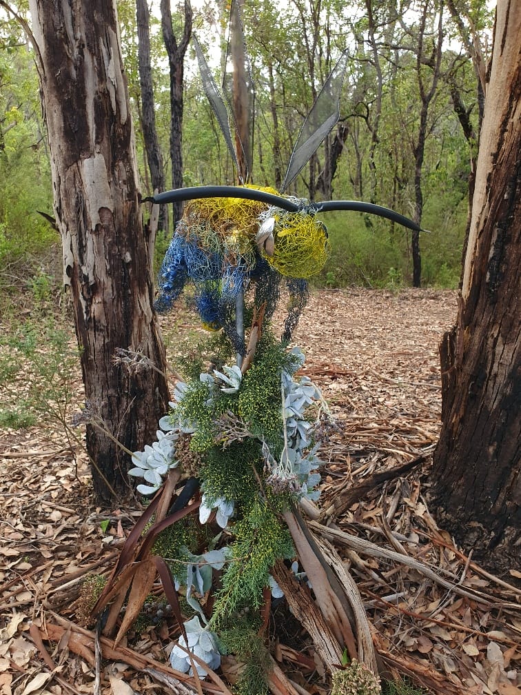Judge’s comments: This work puts charm and enchantment into every day recycled materials. A delightful reference to the blue-banded bee.